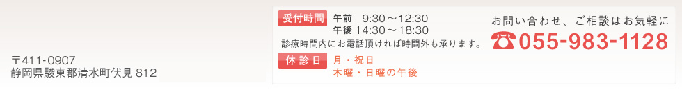 当院は清水町の地域では珍しく土日に受付をしている整骨院です。平日仕事でご利用いただけない方も安心してご利用頂けます。